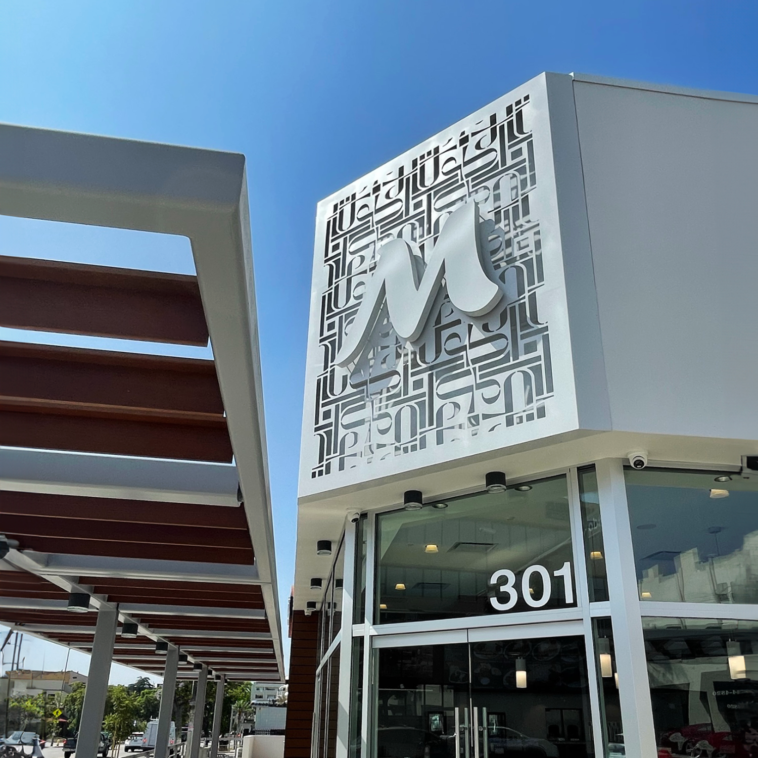 Occupying the space of an old bank on the ground floor of a high-rise office and hotel building above LA’s metro station, this urban location serves one of the busiest spots in the fast-paced Los Angeles Downtown. The expansive glass and dull brass storefront, along with the high volume of interior space, are retained. A free-floating, lowered canopy provides a more appropriately scaled feel in the ordering and serving area.