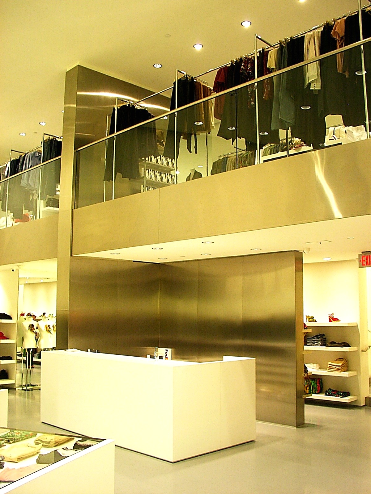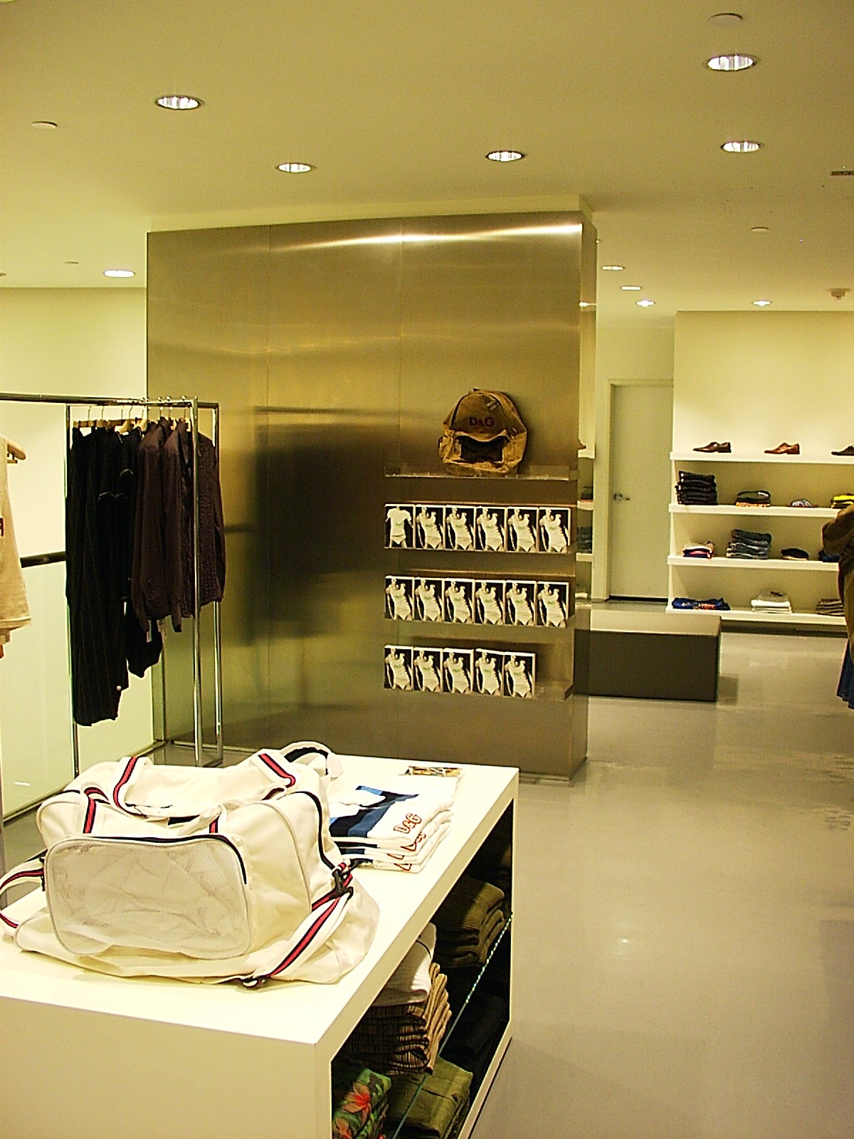The program called for the total demolition of an existing retail space, including the build-out of a new mezzanine level that had to be fully self-supporting. The design was based on D&G’s European prototype, developed by their Milan-based architect.